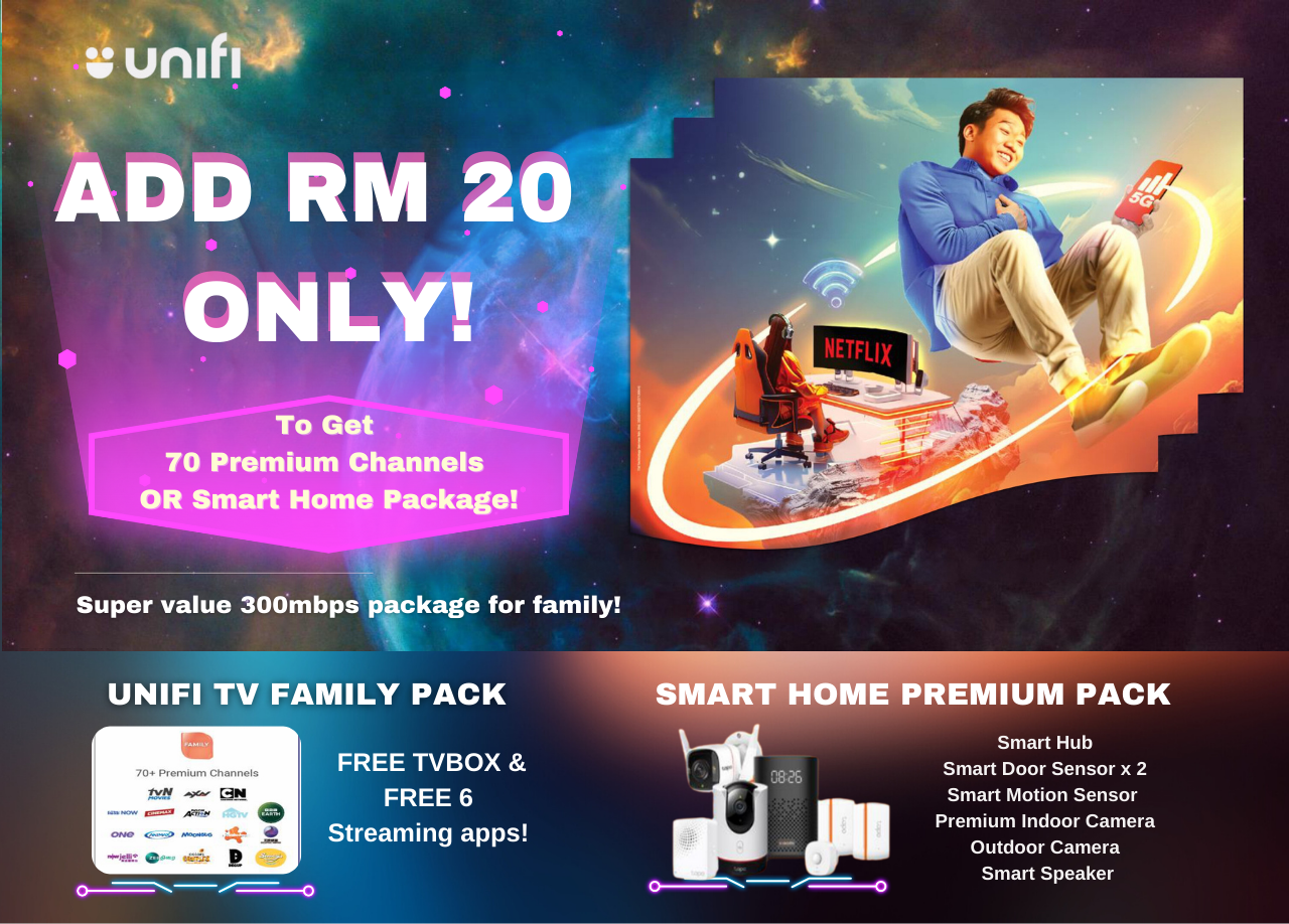 •  RM 149 for Unifi + Smart Home Premium Pack (Was RM 164)